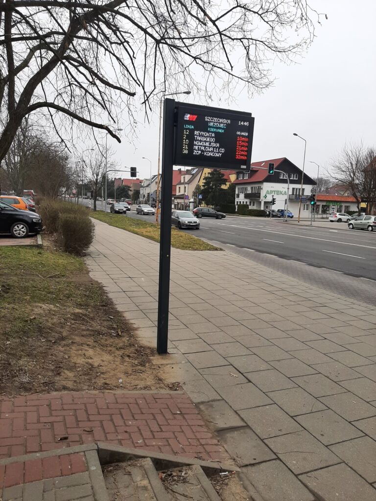 Dobra wiadomość dla pasażerów! Zamontowaliśmy kolejne dwie tablice Dynamicznej Informacji Pasażerskiej (DIP) na przystankach Szczecińska-Dom Kultury Kolejarza oraz Szczecińska-Wieżowiec.